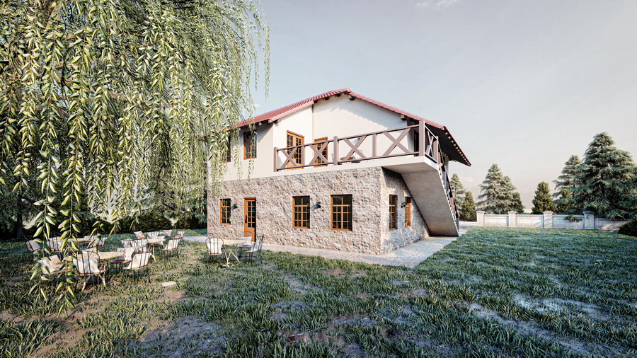 Kompletna projektna dokumentacija sa 3D vizuelizacijom stambenog objekta spratnosti P+1 na Kopaoniku. Funkcionalnim rešenjem objekat je prilagođen seoksom turizmu.