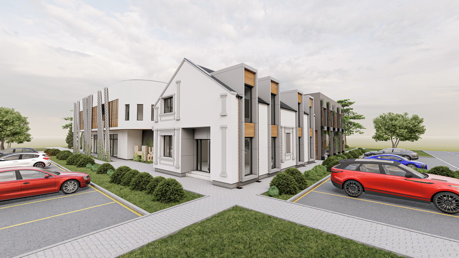 Kompletna projektna dokumentacija sa 3D vizuelizacijom poslovno-stambenog spratnosti Po+P+1 u Opovu.