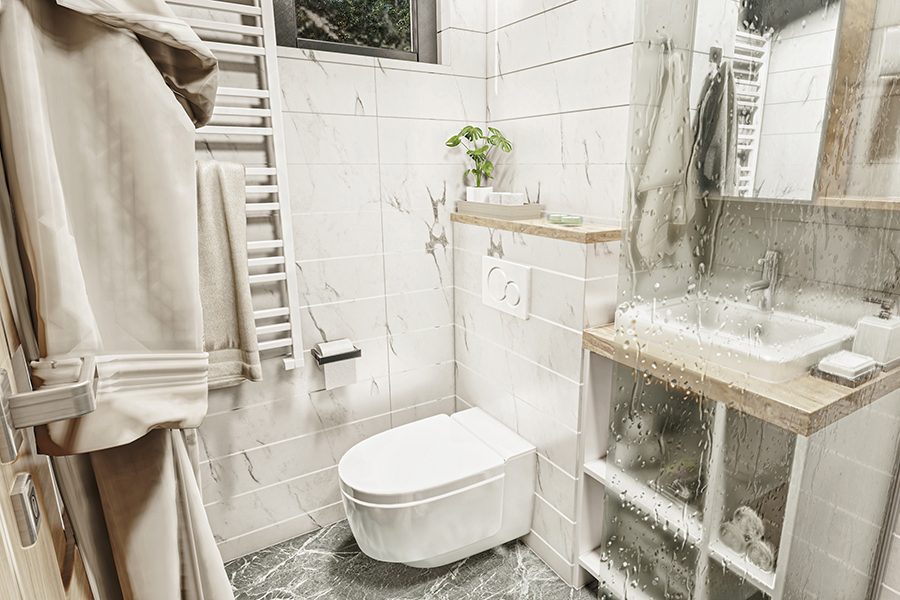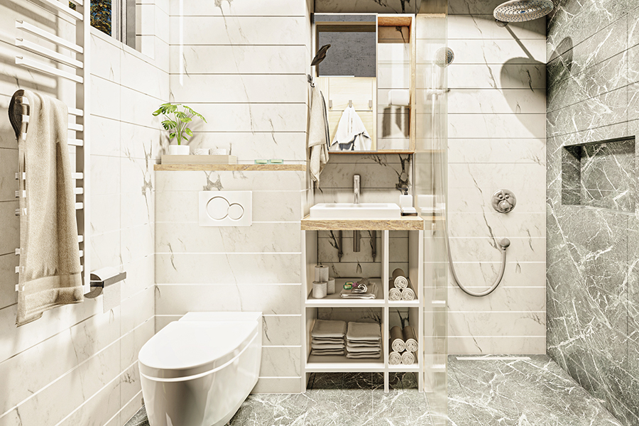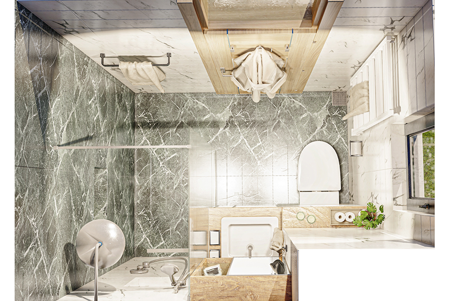 3D vizuelizacija i funkcionalno rešenje kupatila porodičnog stambenog objekta izrađeno prema željama investitora.